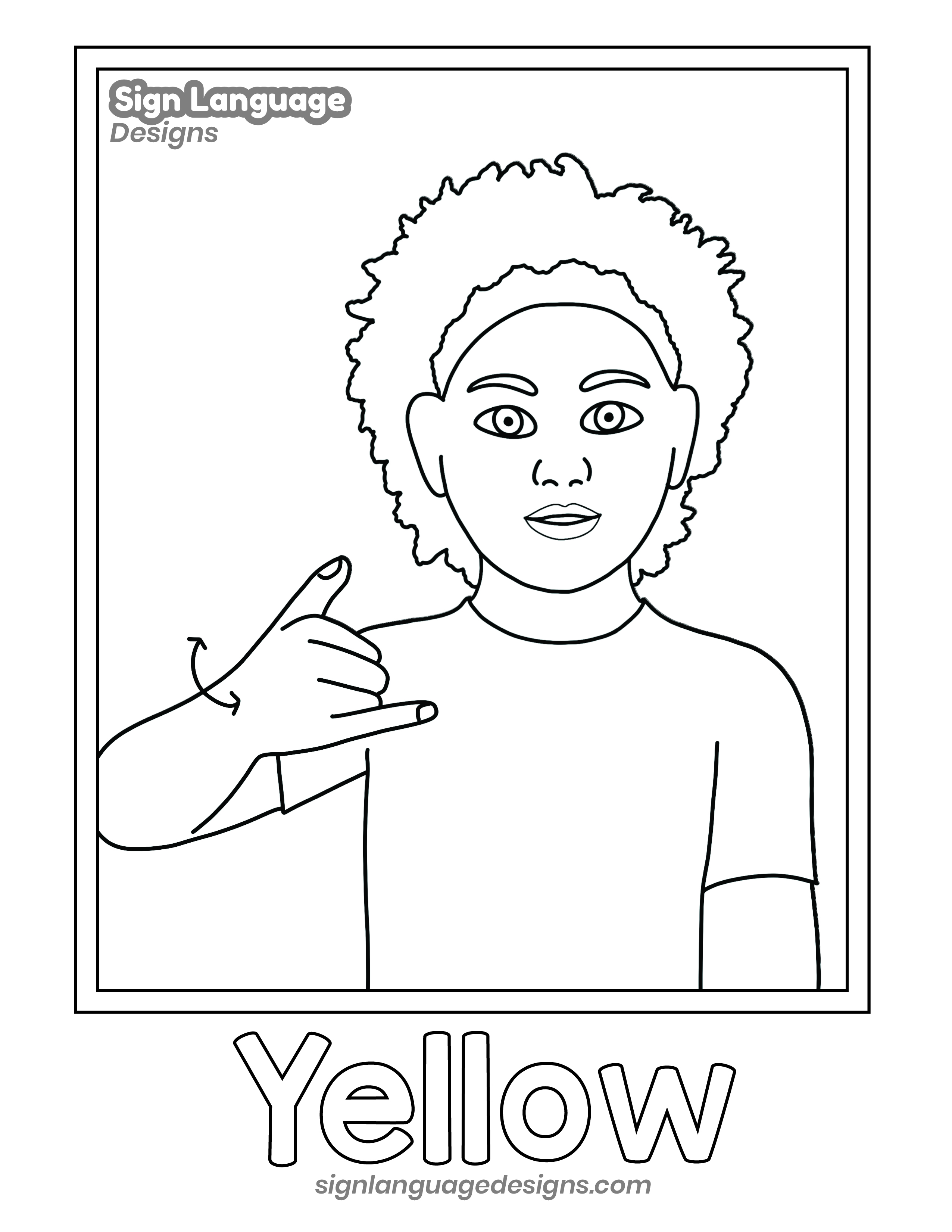 Free ASL sign poster featuring the ASL sign for the color Yellow. This is a black and white poster which is ink-friendly and also can be used as a coloring page. We have color versions available too.