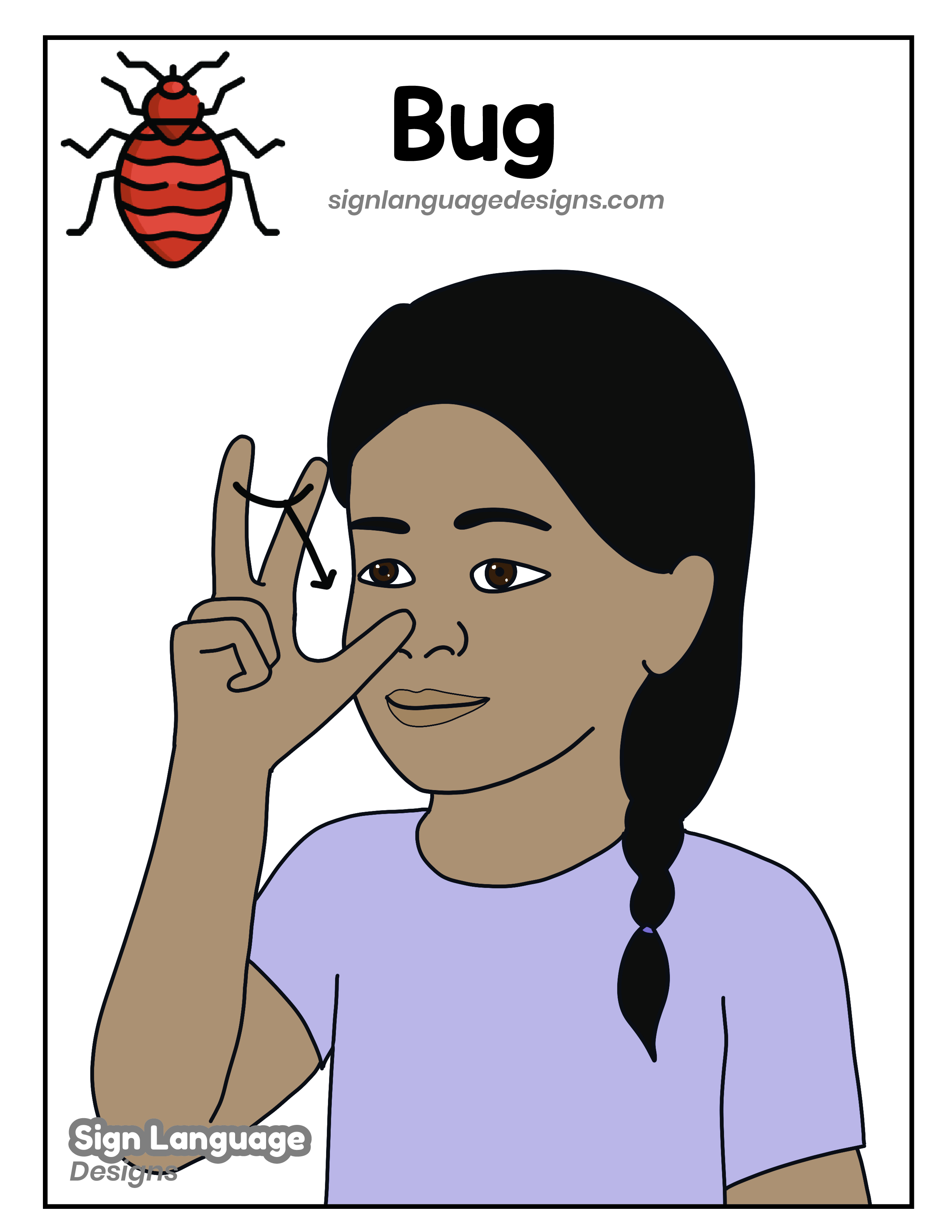 Download “ASL Sign – Bug JPG” asl-sign-bug-16signlanguagedesigns.jpg – Downloaded 1199 times – 2.25 MB Download “ASL Sign – Bug PDF” asl-sign-bug-16signlanguagedesigns.pdf – Downloaded 2635 times – 3.99 MB