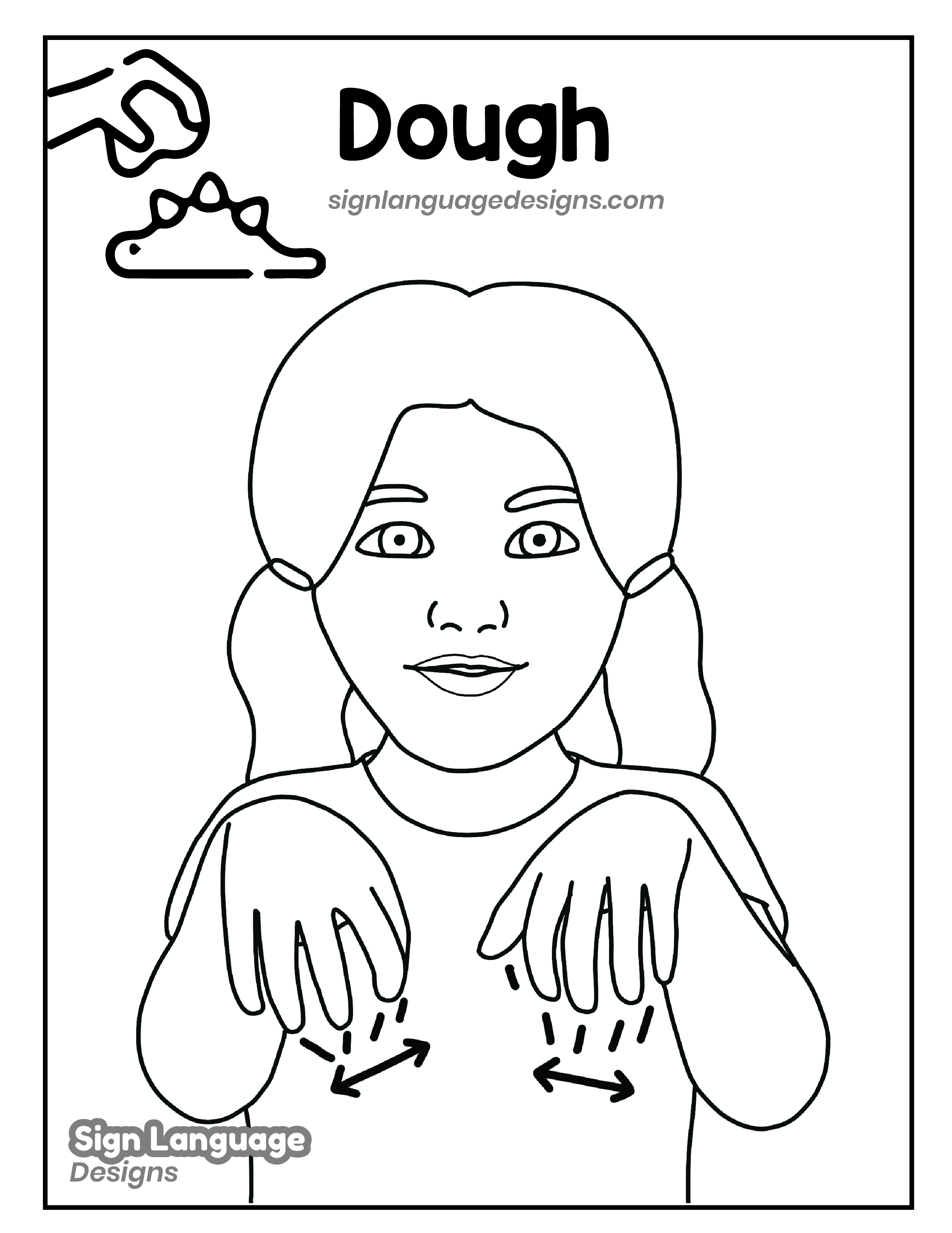 Free ASL sign poster featuring the ASL sign for the word dough. This is a black and white poster which is both printer-friendly and also can be used as a coloring page. You’ll find we have color versions available for free download too HERE!