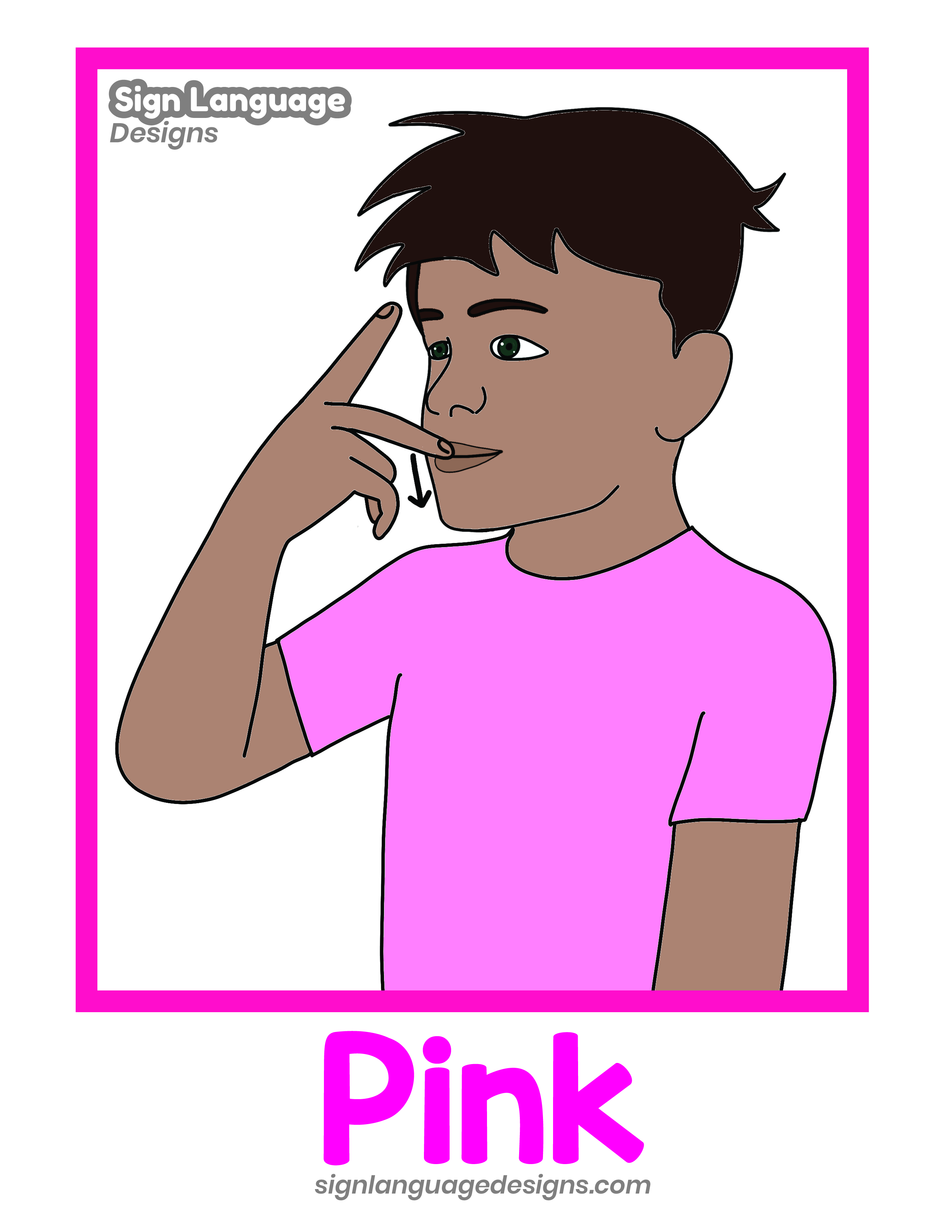 Free ASL sign poster featuring the ASL sign for the color pink.