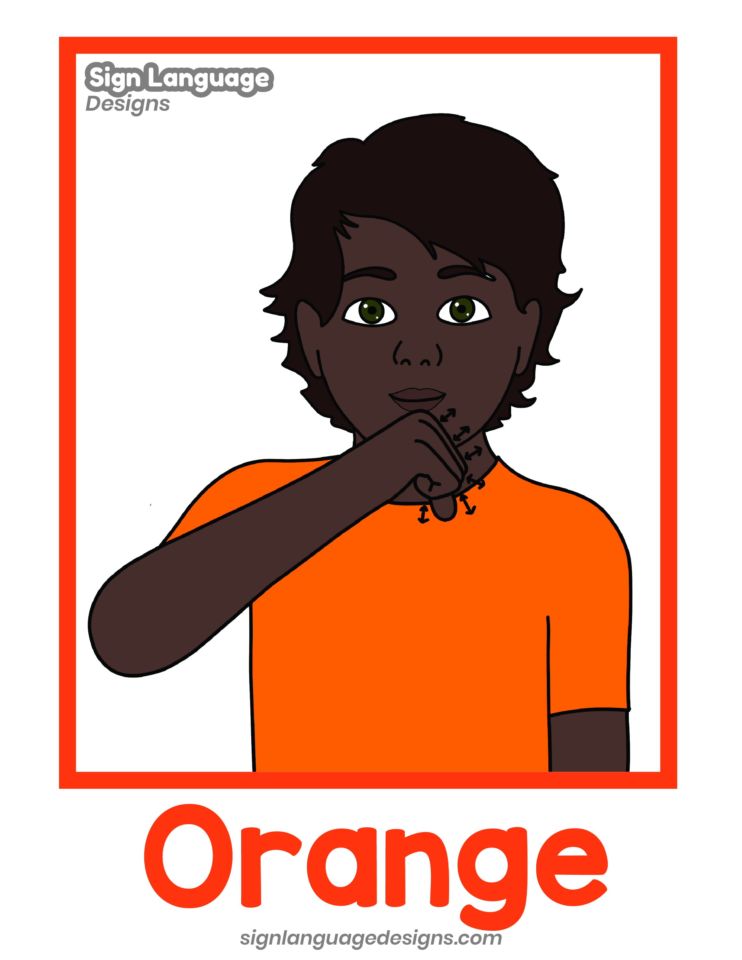 Free ASL sign poster featuring the ASL sign for the color orange.