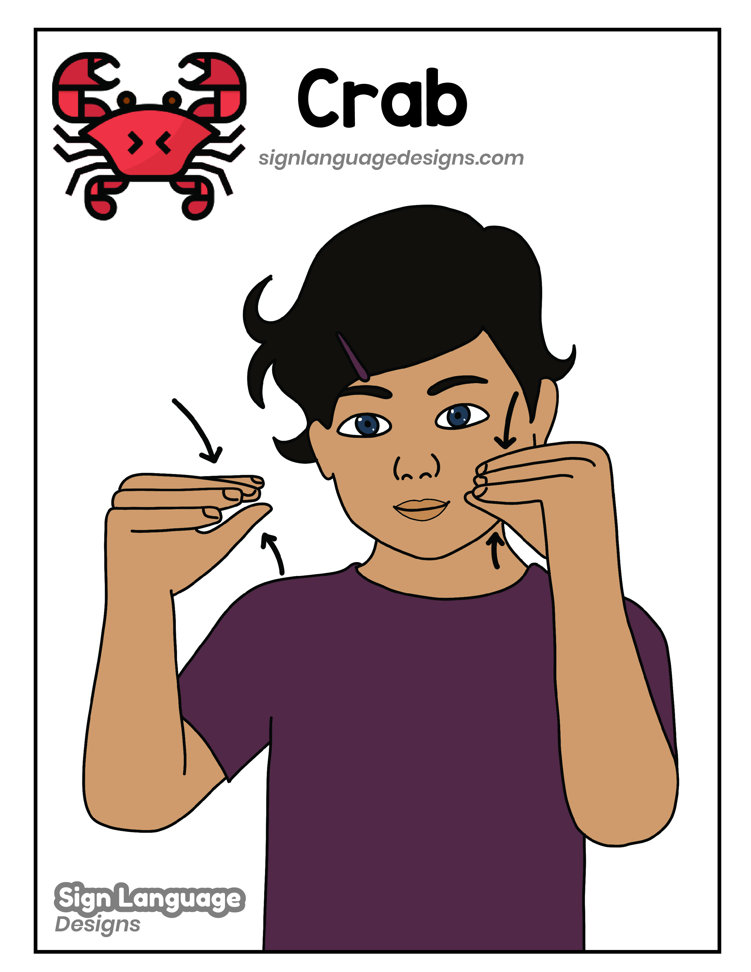 Download “ASL Sign – Crab JPG” asl-poster_signlanguagedesigns-_crab.jpg – Downloaded 894 times – 2.29 MB Download “ASL Sign – Crab PDF” asl-poster_signlanguagedesigns-_crab.pdf – Downloaded 830 times – 4.05 MB