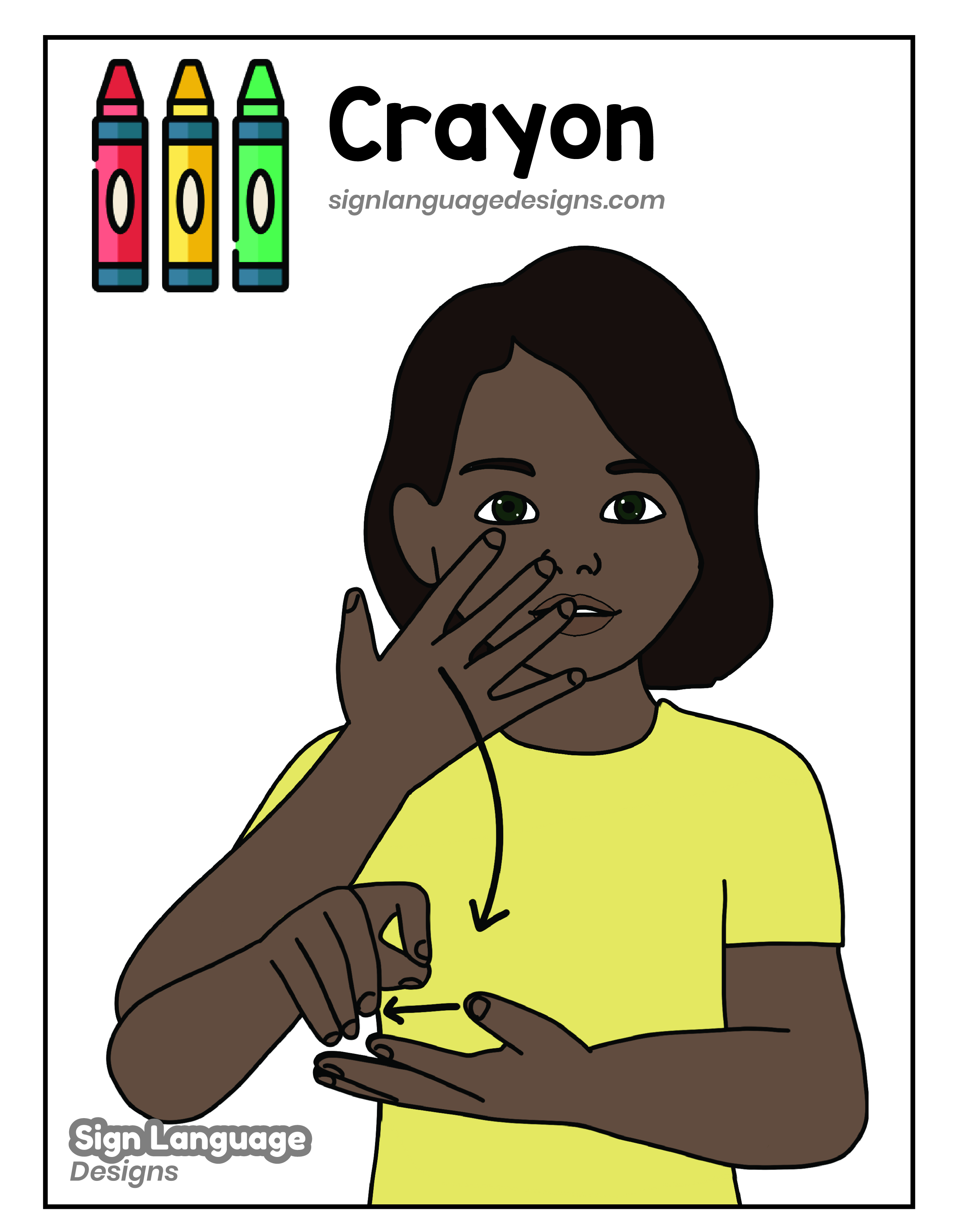 Free ASL sign poster featuring the ASL sign for the word crayon.