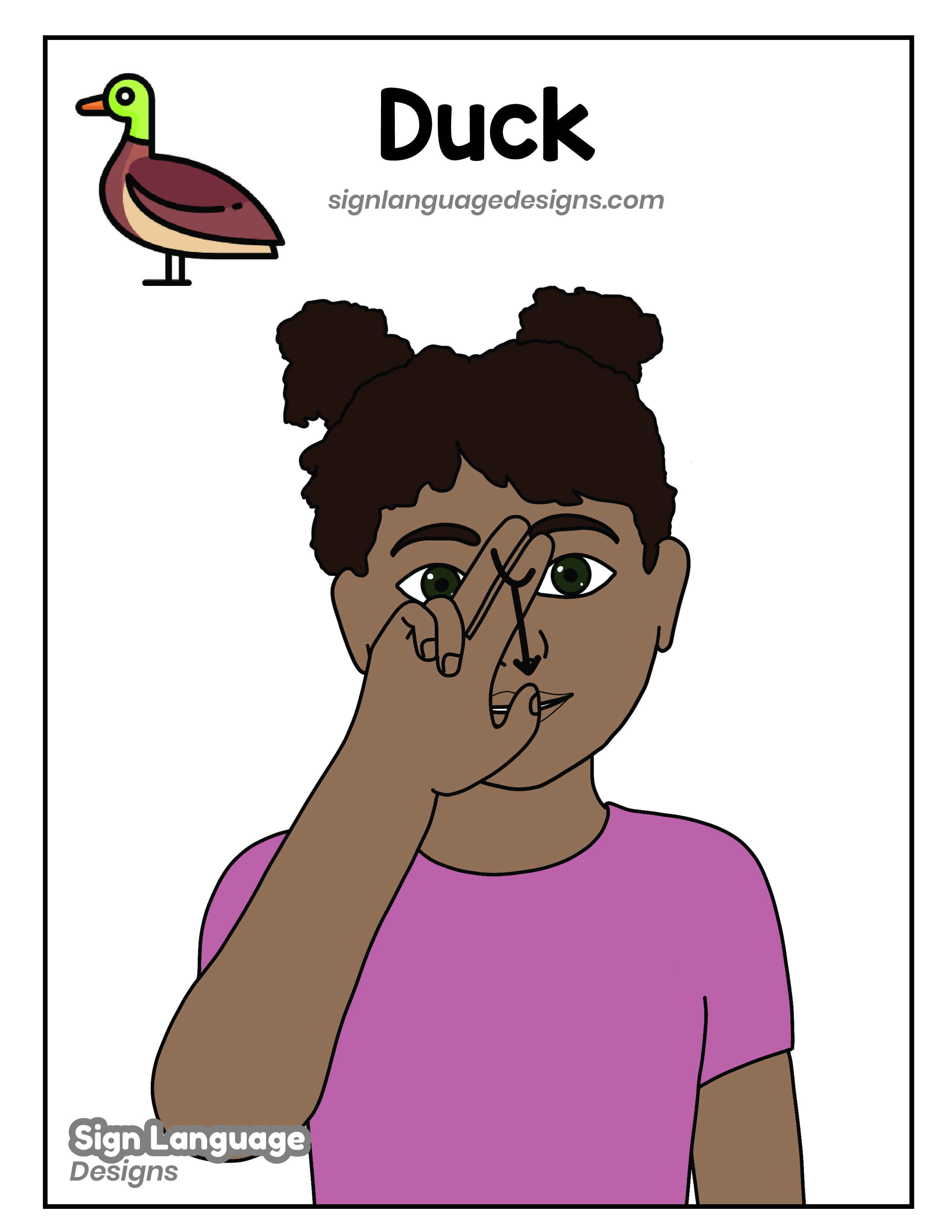 Free ASL sign poster featuring the ASL sign for the word duck.