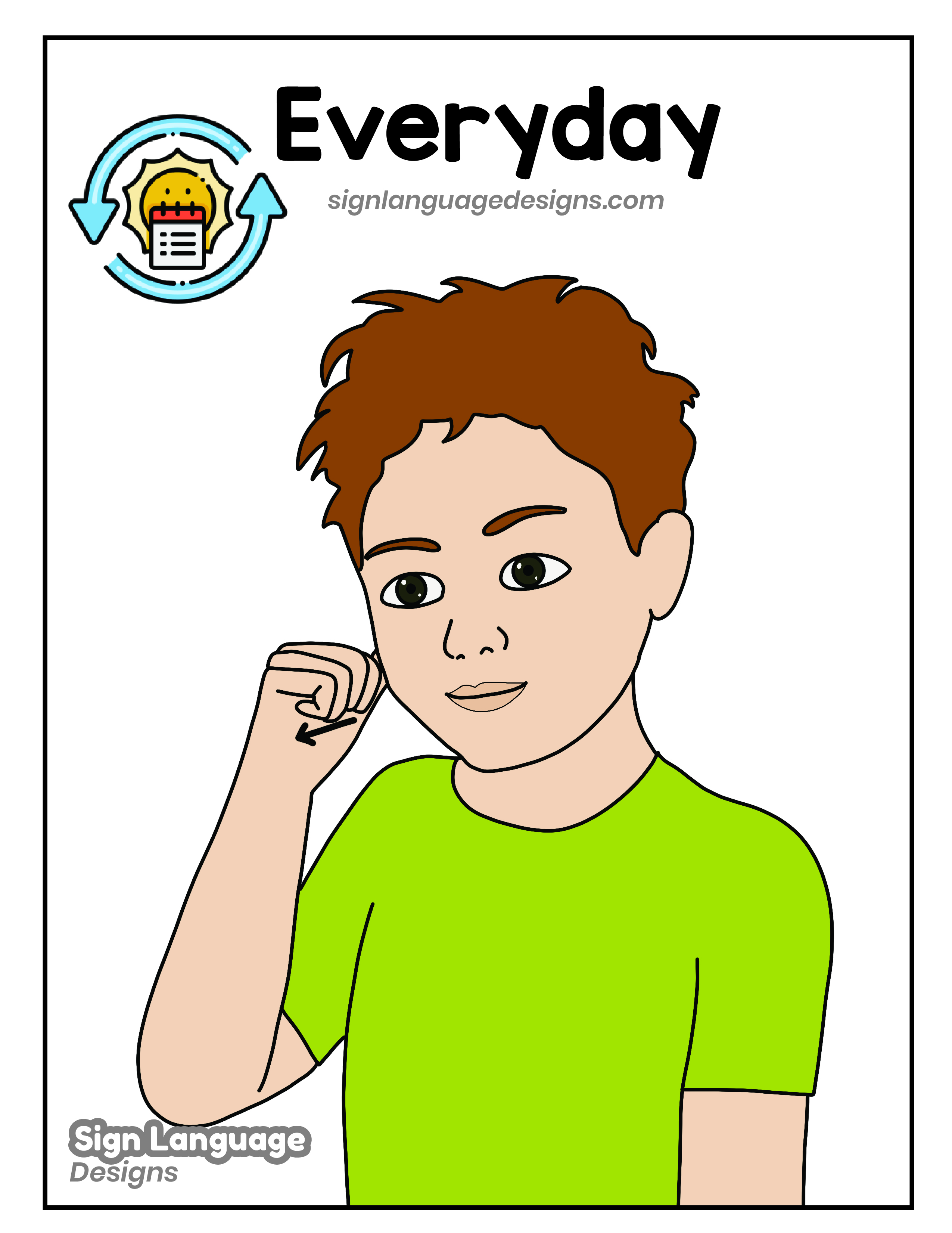 Free ASL sign poster featuring the ASL sign for the word everyday.