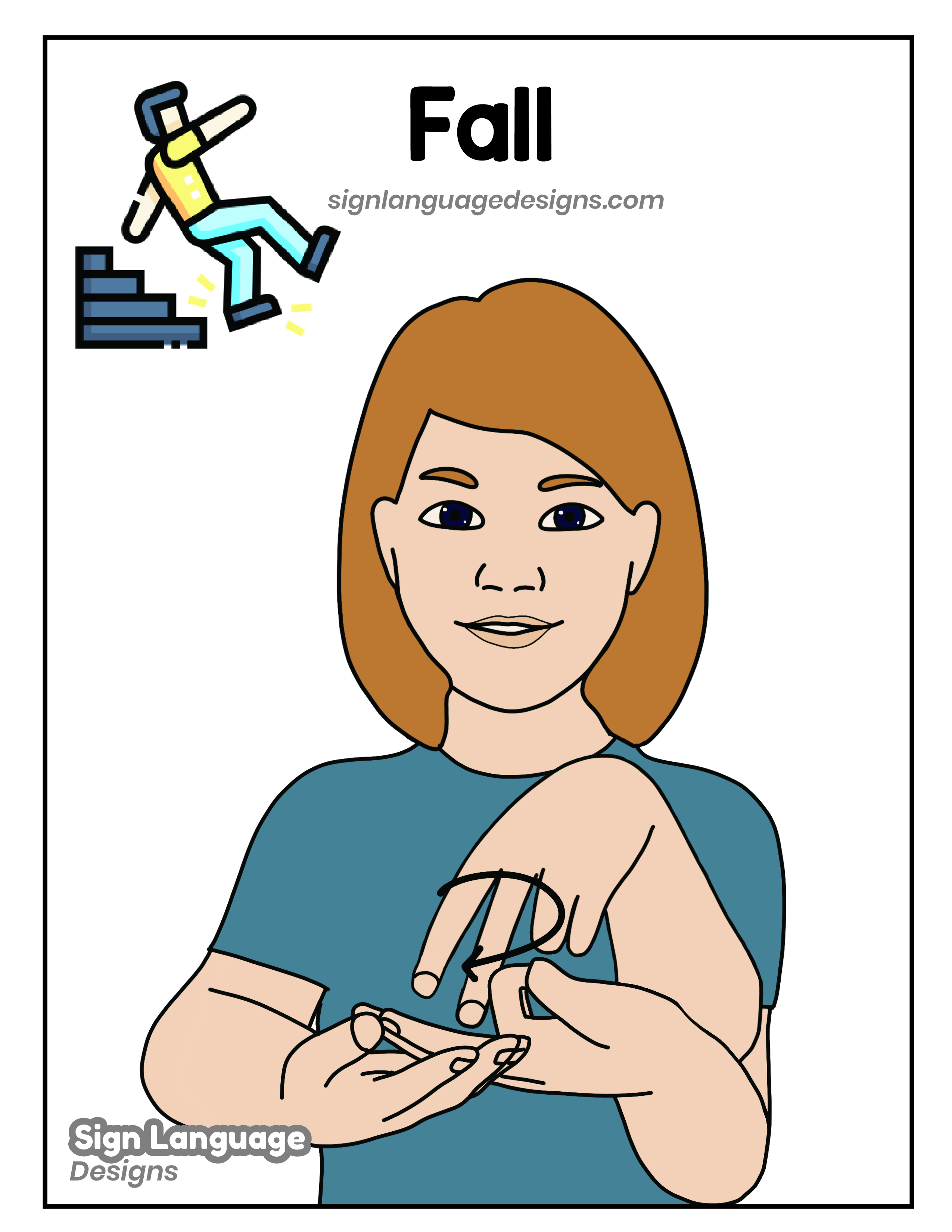 Free ASL sign poster featuring the ASL sign for the word fall.