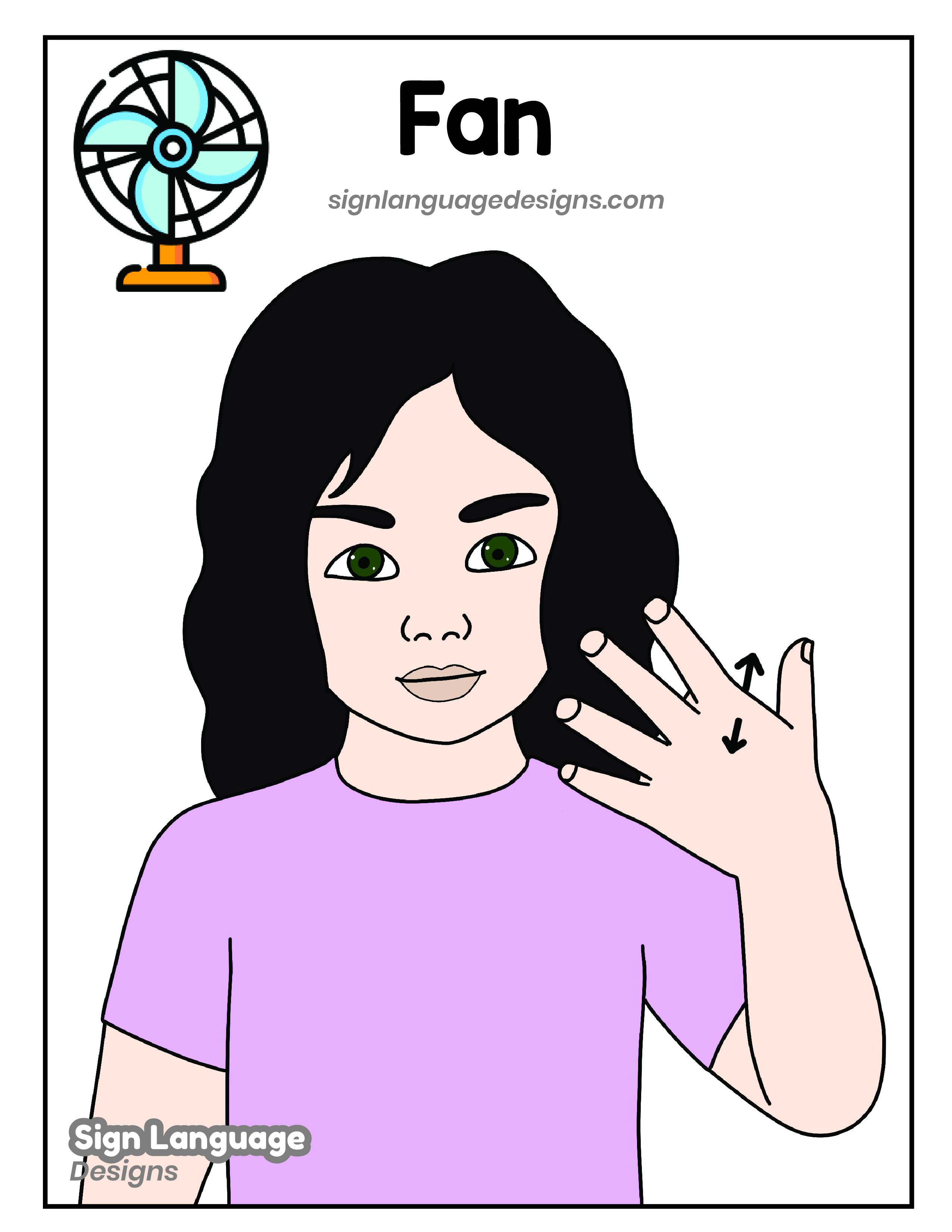 Free ASL sign poster featuring the ASL sign for the word fan.