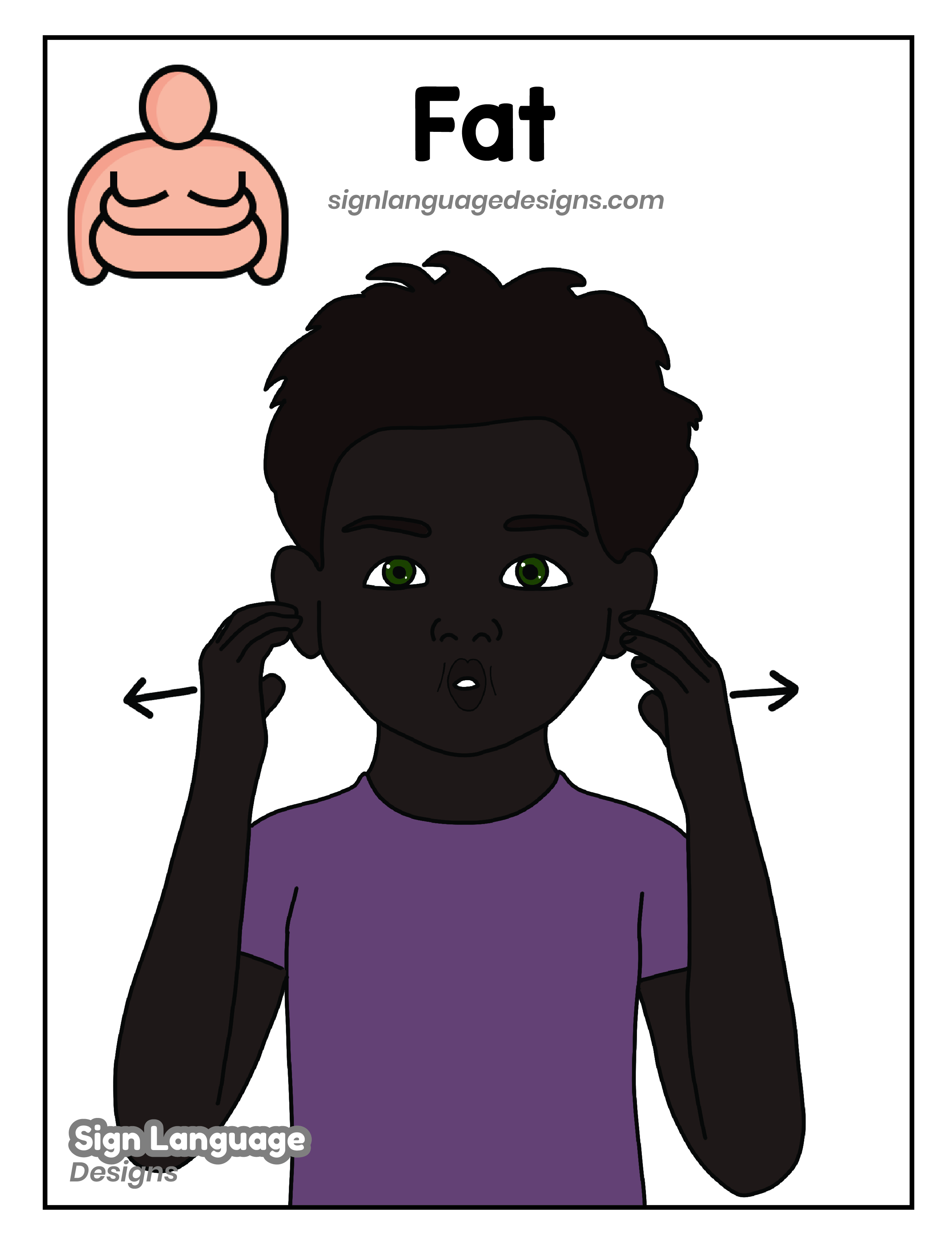 Free ASL sign poster featuring the ASL sign for the word fat.
