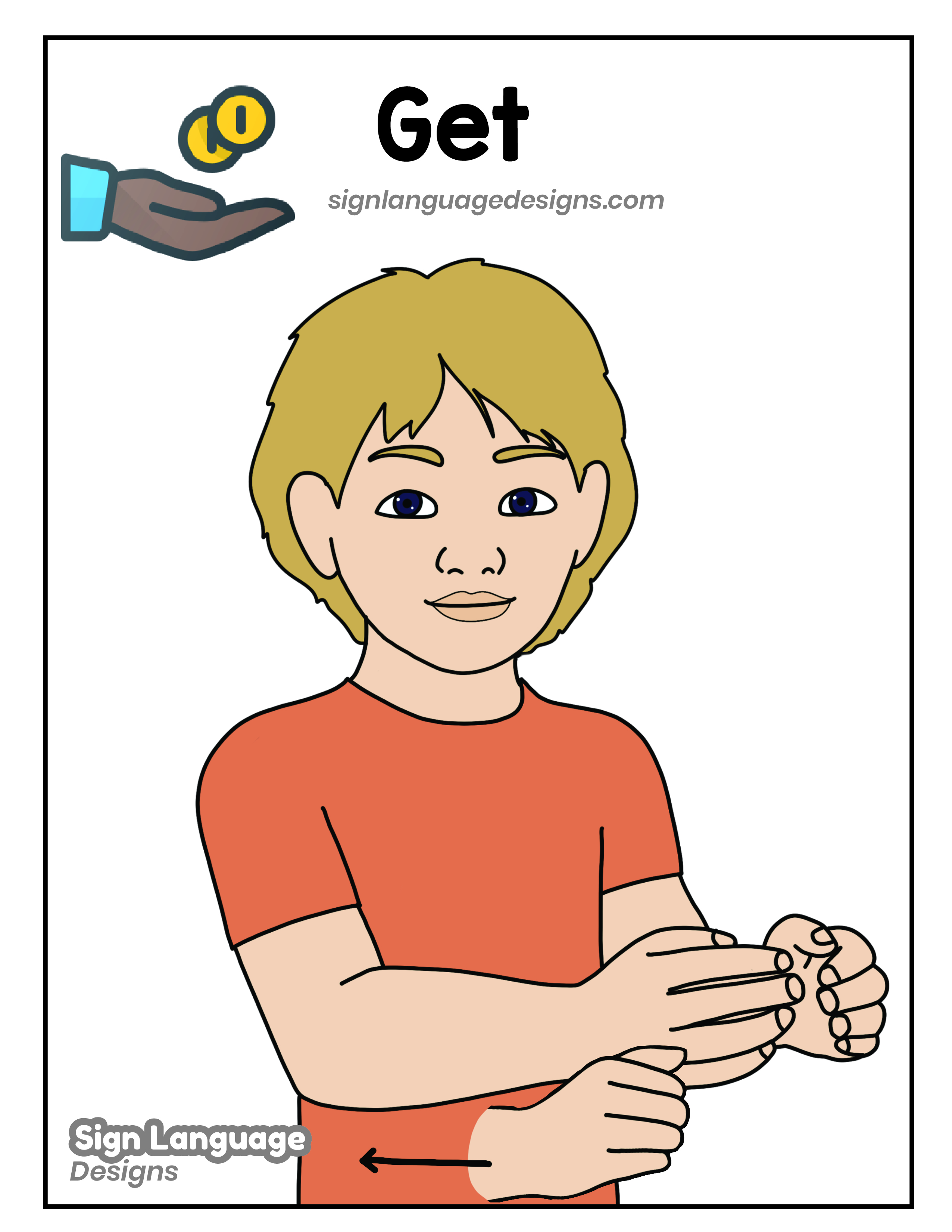 Free ASL sign poster featuring the ASL sign for the word get.