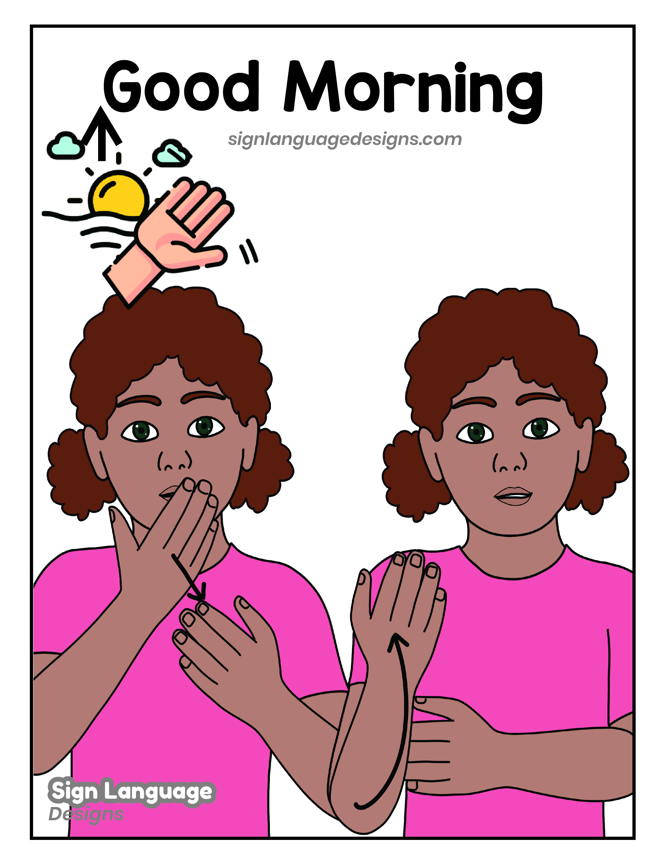 Free ASL sign poster featuring the ASL sign for the word good morning.