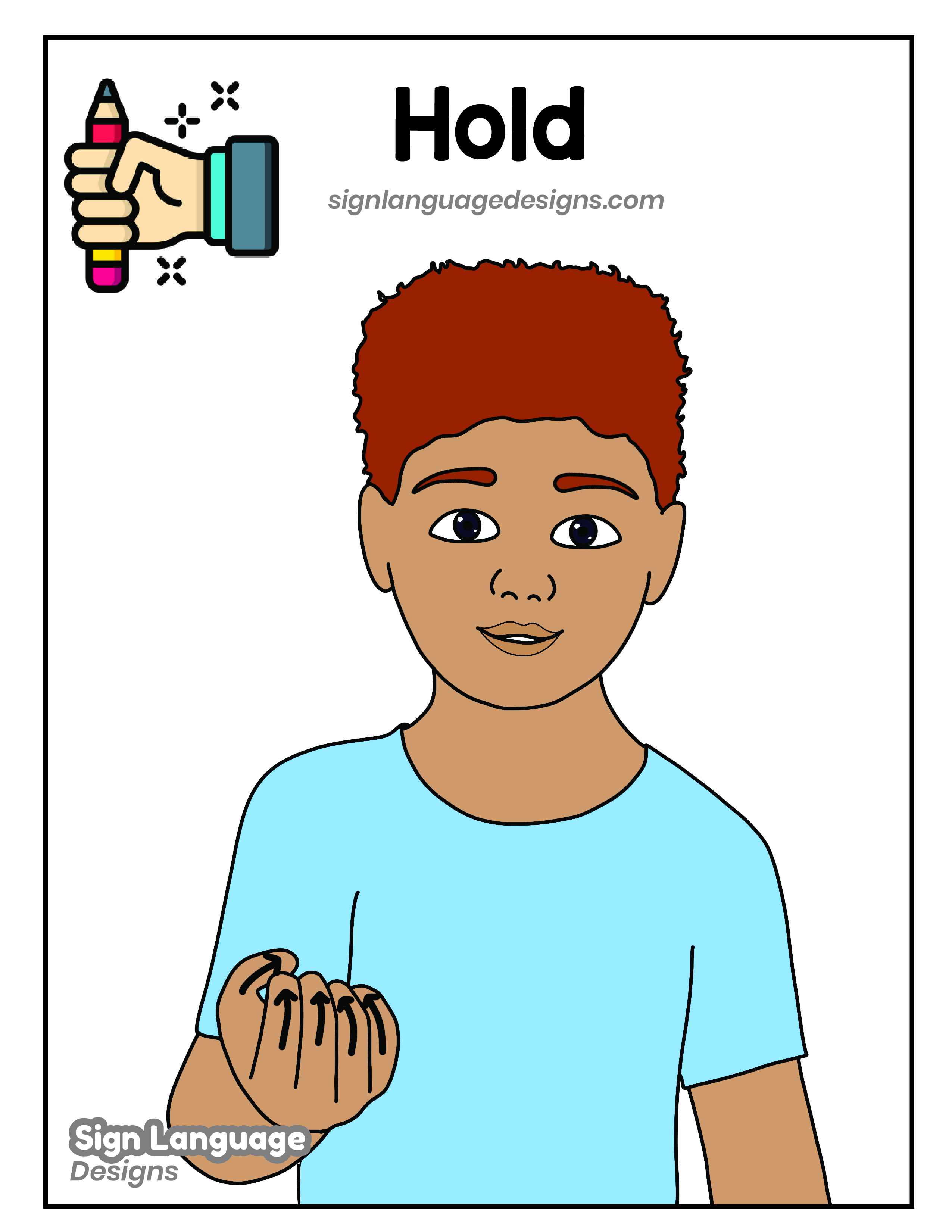 Free ASL sign poster featuring the ASL sign for the word hold.