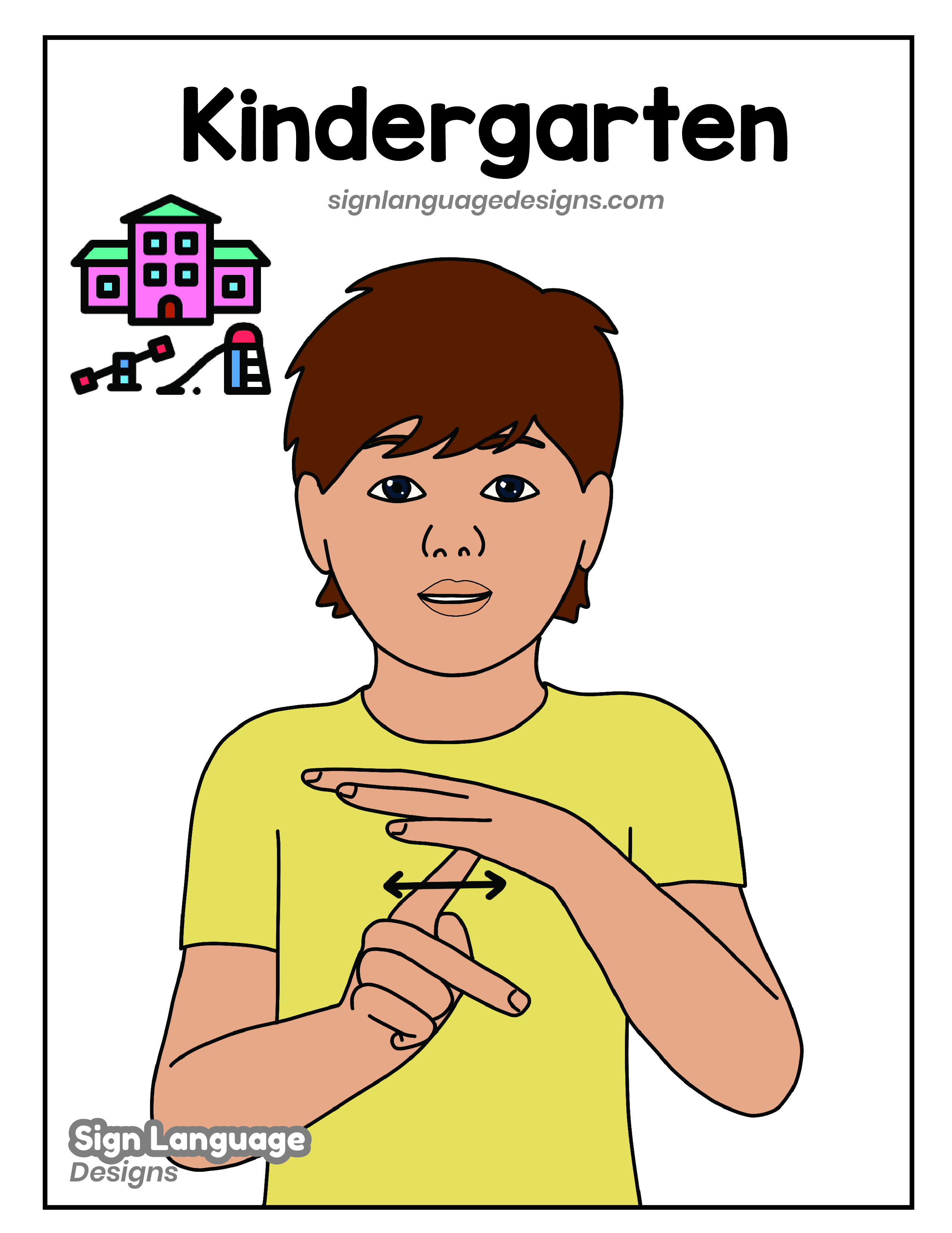 Free ASL sign poster featuring the ASL sign for the word kindergarten.