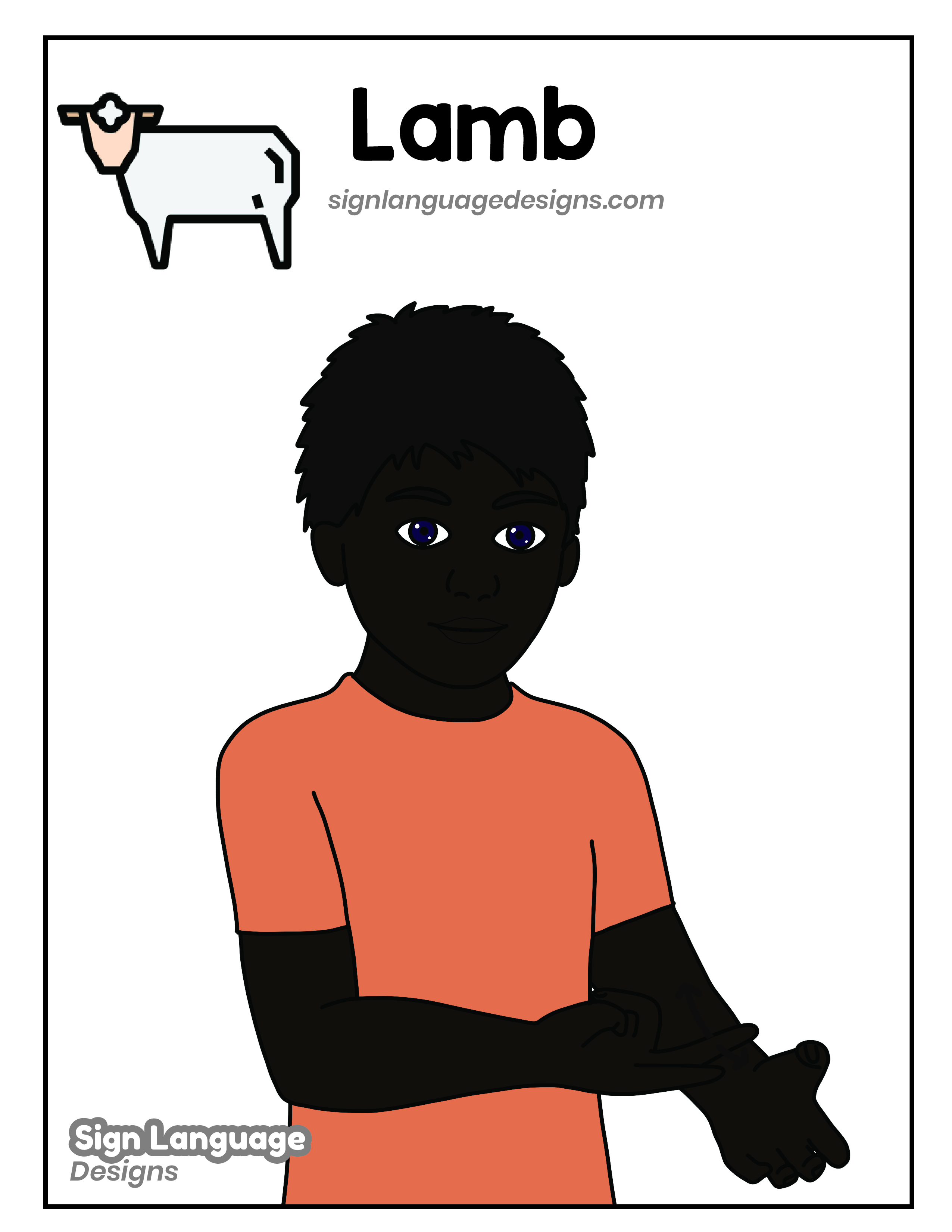 Free ASL sign poster featuring the ASL sign for the word Lamb