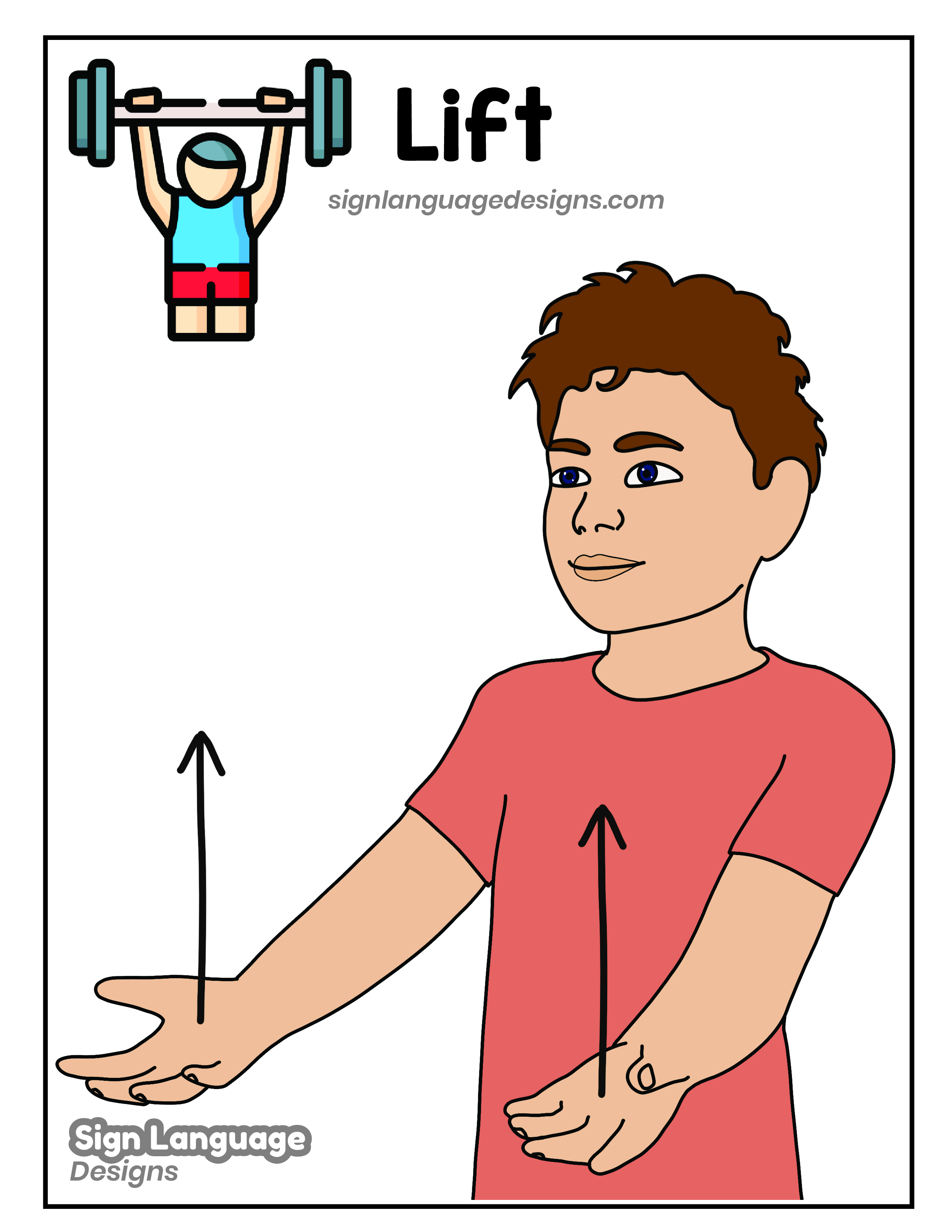 Free ASL sign poster featuring the ASL sign for the word LIFT
