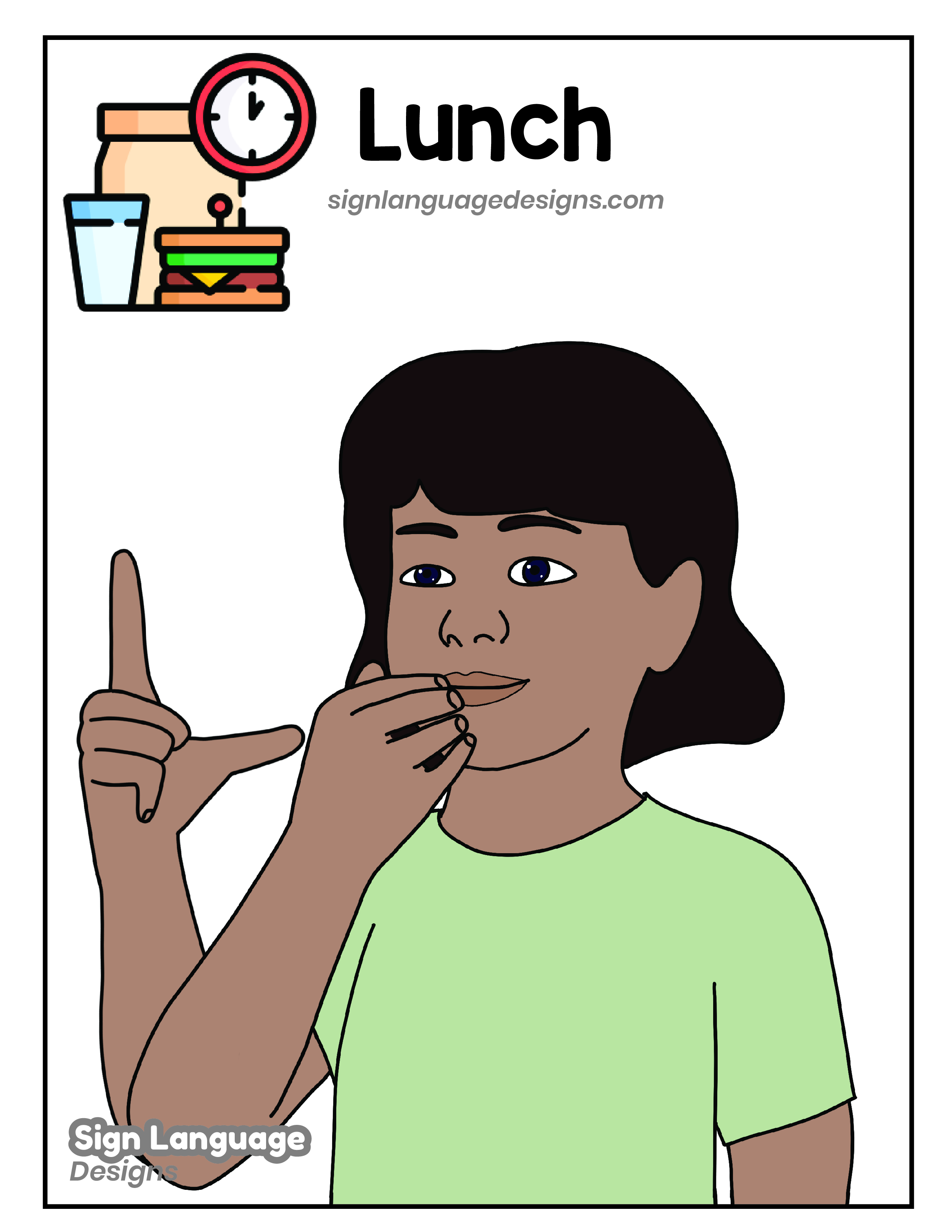 Free ASL sign poster featuring the ASL sign for the word LUNCH