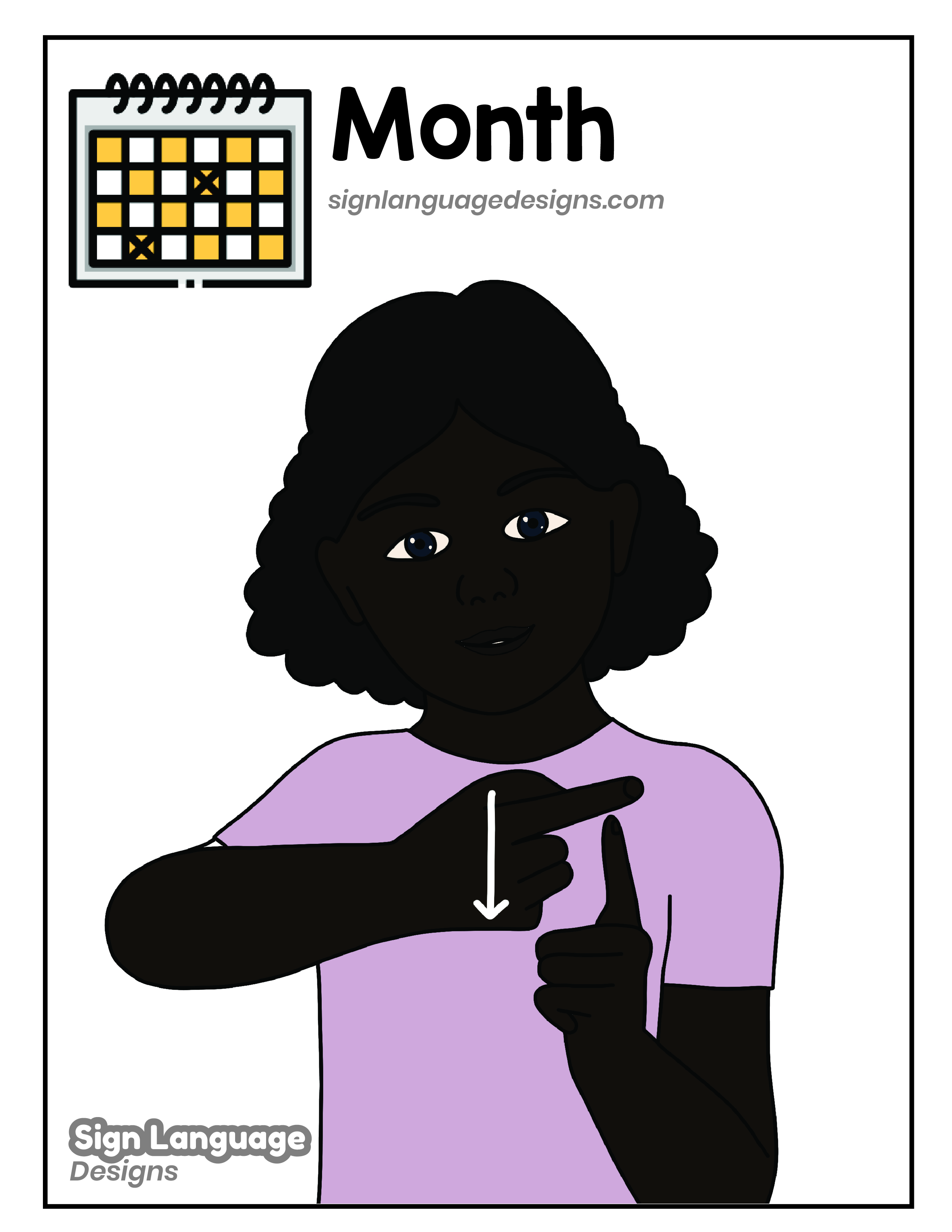 Free ASL sign poster featuring the ASL sign for the word MONTH.