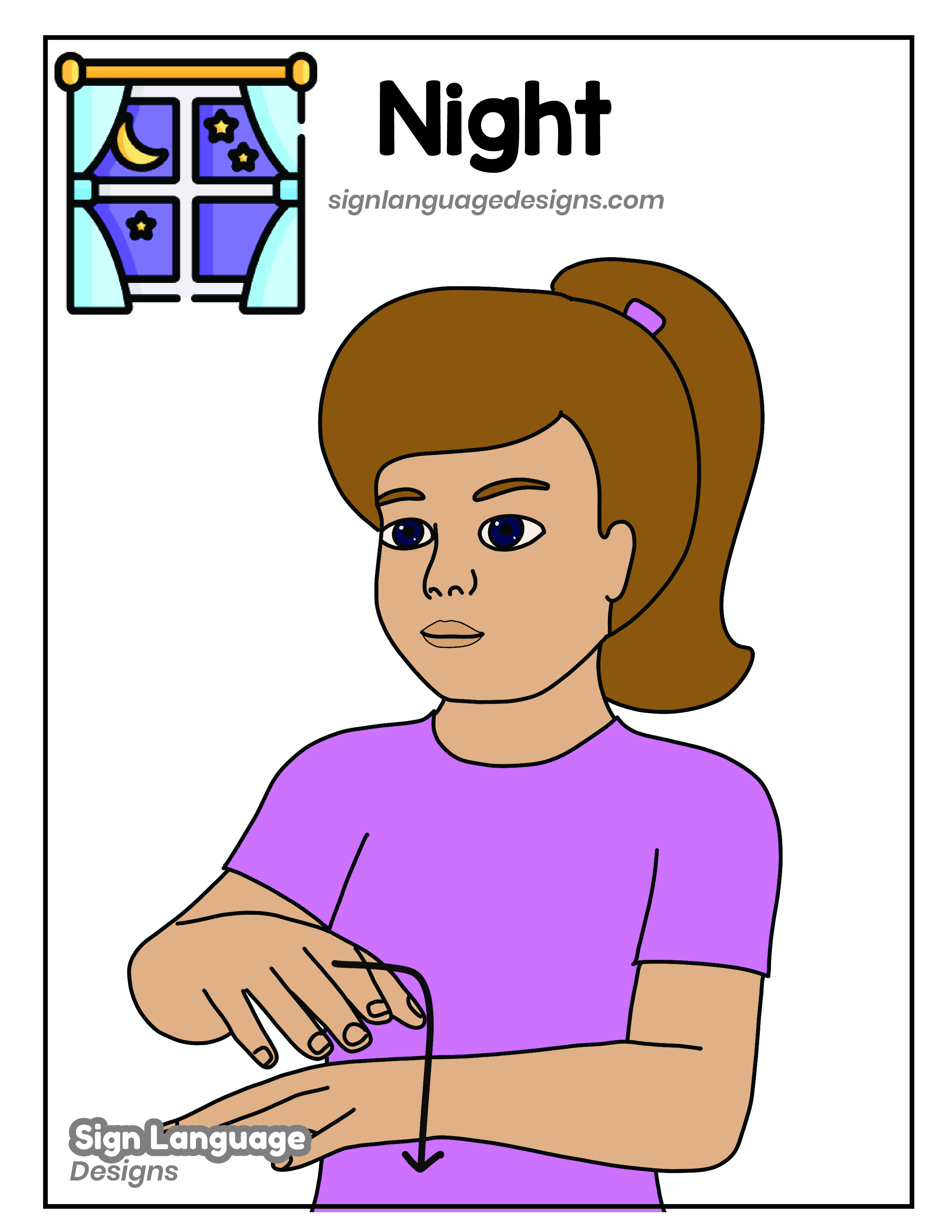 Free ASL sign poster featuring the ASL sign for the word NIGHT.