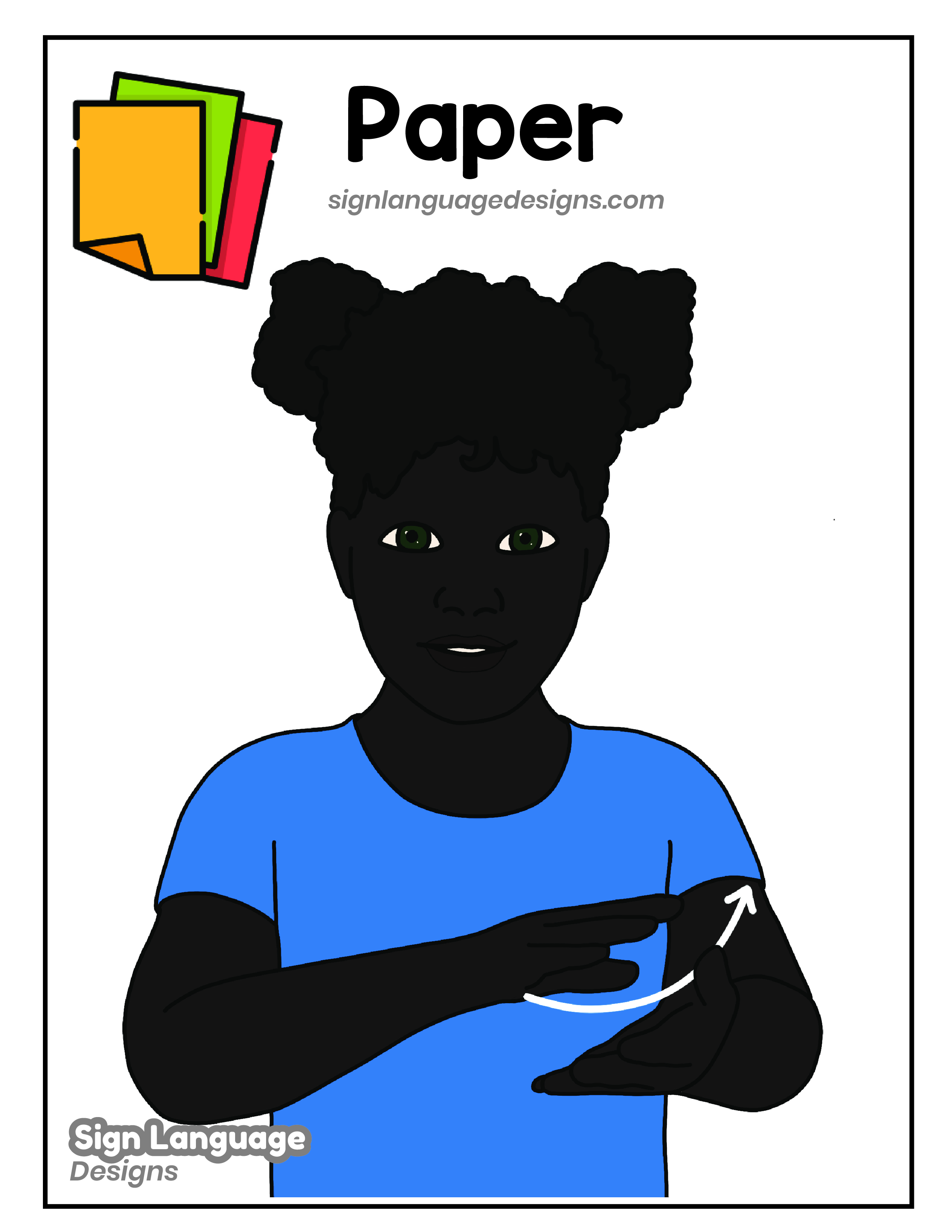 Free ASL sign poster featuring the ASL sign for the word PAPER.