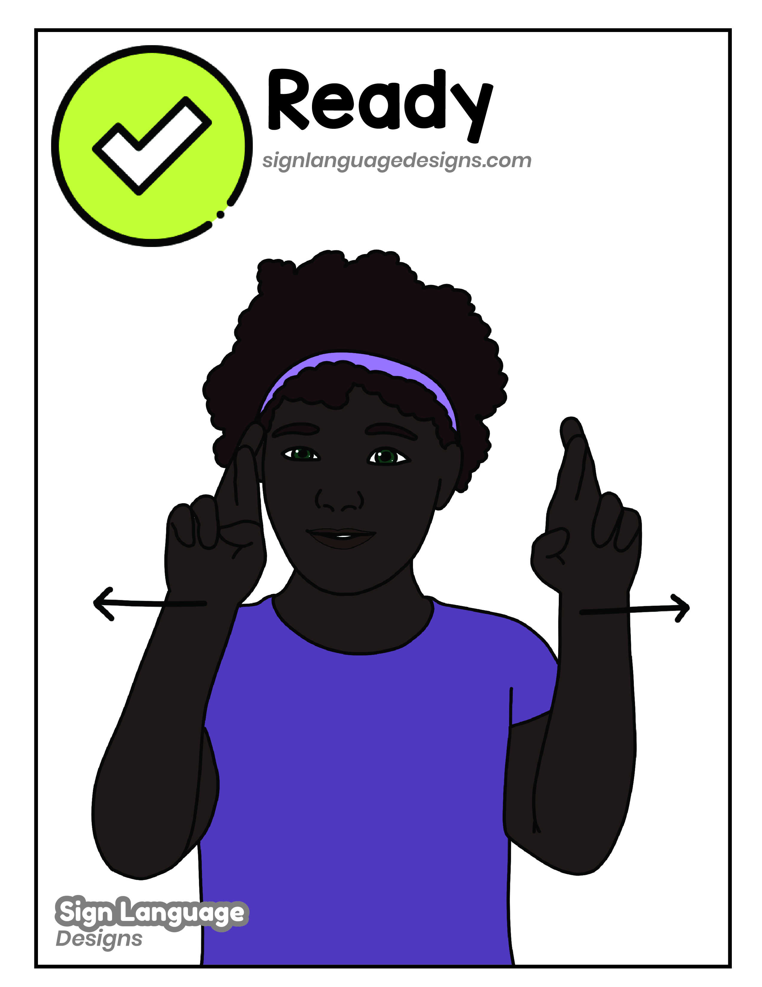 Free ASL sign poster featuring the ASL sign for the word ready.