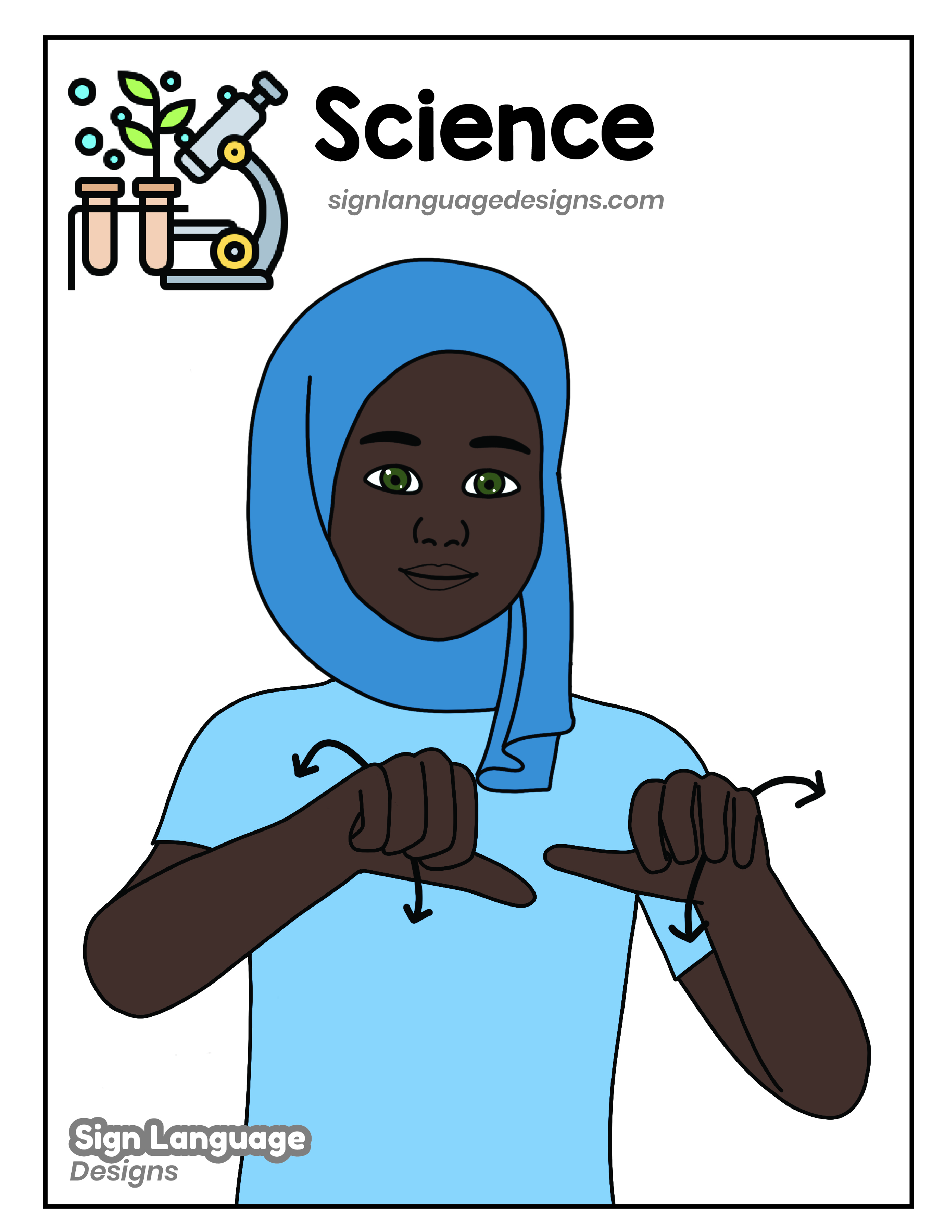 Free ASL sign poster featuring the ASL sign for the word SCIENCE.